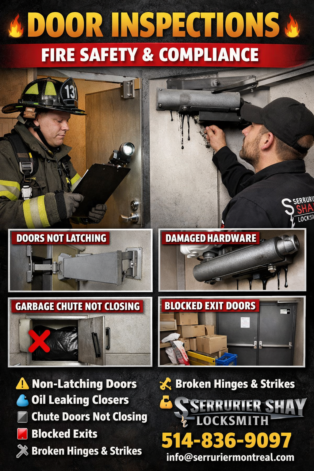 Attention building owners and property managers! ๐ข๐ฅ The fire department performs annual inspections to ensure your building is safe and compliant. At Serrurier Shay Locksmith, we specialize in inspecting, repairing, and maintaining all doors so you can pass inspections stress-free.